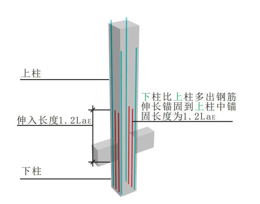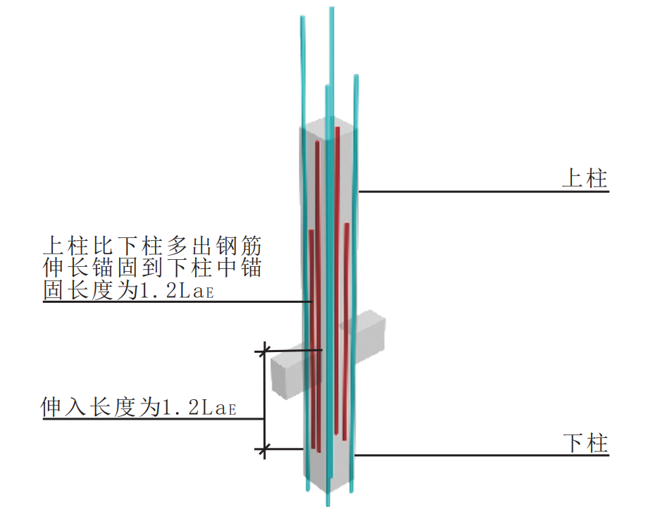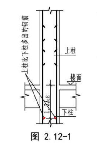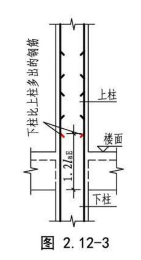 第一种情况:上层柱钢筋比下层柱钢筋多的情况,且钢筋直径相同的情况下,上层多余的钢筋会往下层锚固个1.2lae,1.2lae是从框架梁顶算起,且lae是按上层柱钢筋直径计算(详17G101-11、18G901-1)