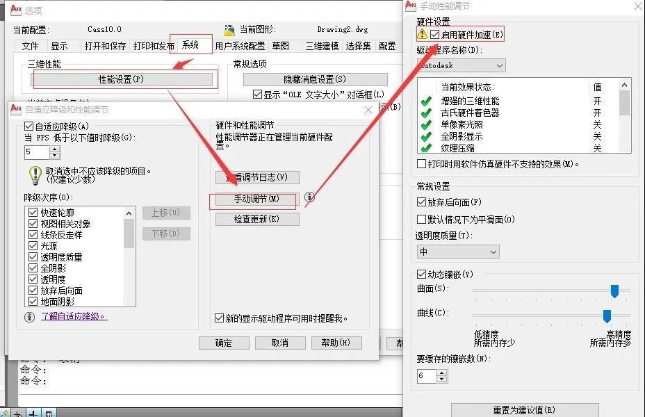 答:在命令行输入options,按下图设置: