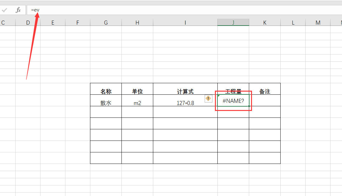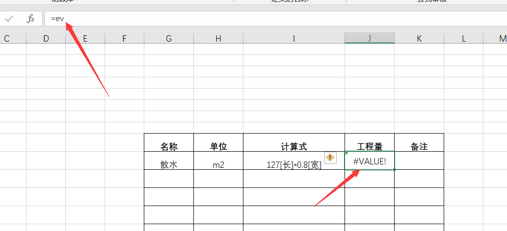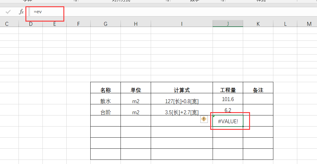 首先,介绍Evaluate函数使用,例如,想求得几个构件的工程量,如果你用的是excel,你在工程量直接输入ev函数是会出错的。(WPS不会受到影响,如果你用的wps,甲方用的excel,打开就会出错哦)