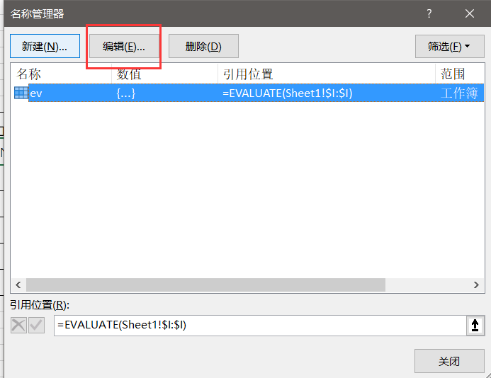 这里的话就需要重新定义Evaluate函数了,直接点击【菜单栏】-【公式】-【名称管理器】或者快捷键Ctrl+F3,打开名称管理器
