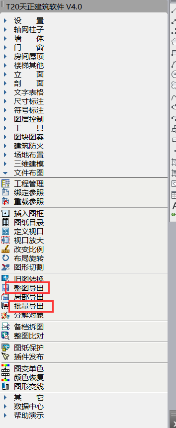 这是最简单的一个方法,整图导出和批量导出的区别是单张图和多张图,如果你的天正输入命令无效或者没有右边的工具栏,可能是你的天正没有完全破解,你按住快捷键Ctrl加=号看看能不能跳出工具栏,不能跳出就证明是没有破解的天正,或者破解不完善。