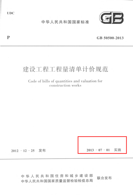 上面两张图是GB50500-2013的两个版本,实施时间都不同