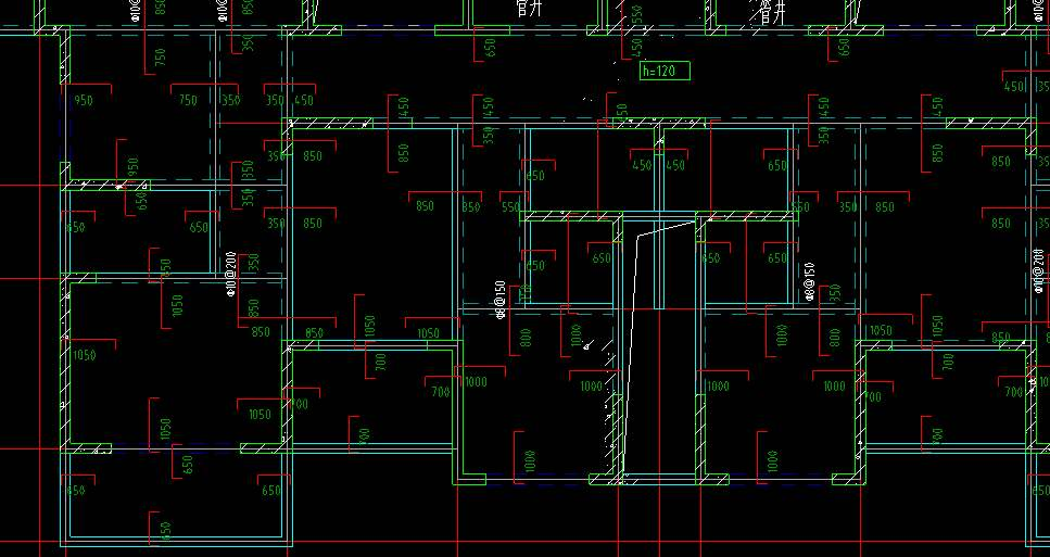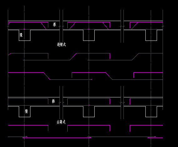 左右两侧像个爪子一样伸出来的就是板的负筋(如图一),下面这张板配筋图其实一般我们称呼他为分离式布筋(如图二、图上),也就是单层双向+负筋的形式,其实还有连续式,弯起式,不过都一律改为这种了,当然还有一种是双层双向,就是底筋和面筋形式。