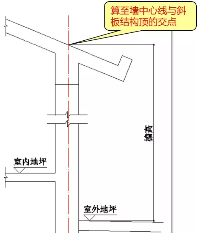 (三)坡屋面或其它曲面屋顶均算至墙的中心线与屋面板交点的高度;