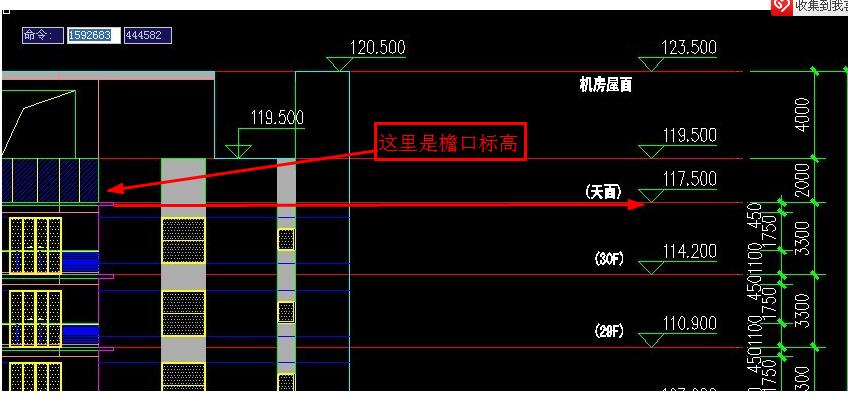 所以檐高就是指室外地坪至屋面的檐口(最低点)或屋面现浇板顶(凸出屋面的水箱间、电梯间、亭台楼阁不计算檐高)的高度 。