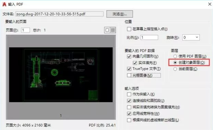 接着在一些“打开参数”设置面板里面,我们注意要选择“创建对象图层”,它默认是选择第一个“使用PDF图层”,默认的打开就是PDF原格式,没有达到我们想要的效果。点确定后稍等片刻加载转换完成就可以了。