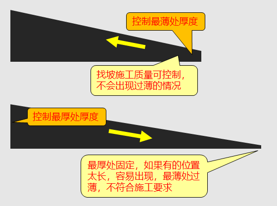 所以一般图纸都是规定最薄处 ,向最厚处找坡的标注。