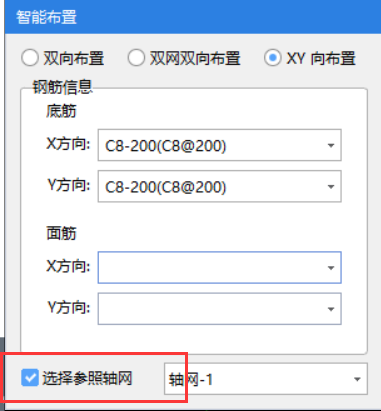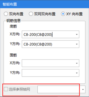问题:广联达中,为什么现浇板布置XY方向钢筋没反应?解决办法:XY方向布置板受力筋时,没有选择参照轴网,或者参照轴网此处无法勾选,就会布置不了受力筋。