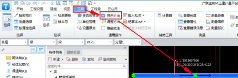 问题:广联达如何显示/隐藏线性图元方向?