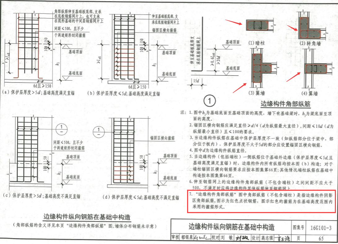 在16G101-3第65页中,明确了约束边缘构件在基础锚固区的做法,