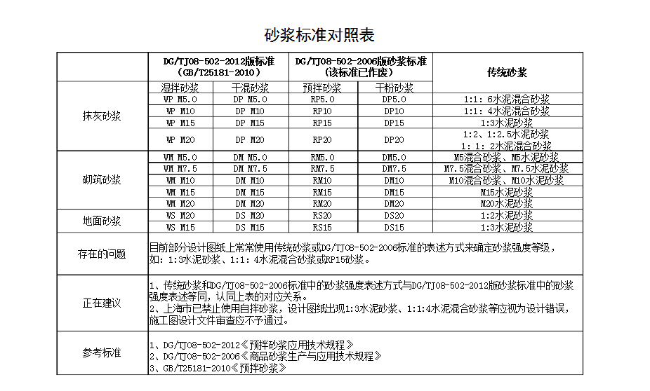 问题:有砂浆标准对照表吗?预拌砂浆和自拌砂浆对比