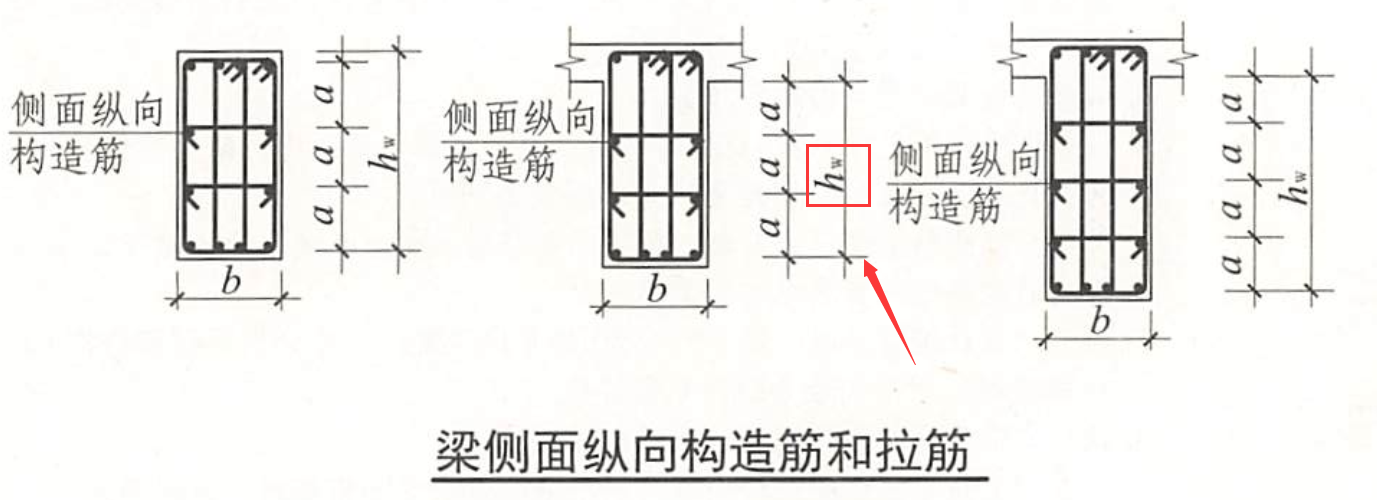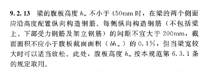 梁腹板hw的取值范围多了一个S,S为梁底至梁下部纵向钢筋合力点距离,当梁下部纵筋为一排时,S取至钢筋中心线位置,为两排时,S取近似值60mm