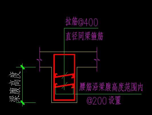 梁hw≥450mm时,按照下表在梁的两侧配置腰筋