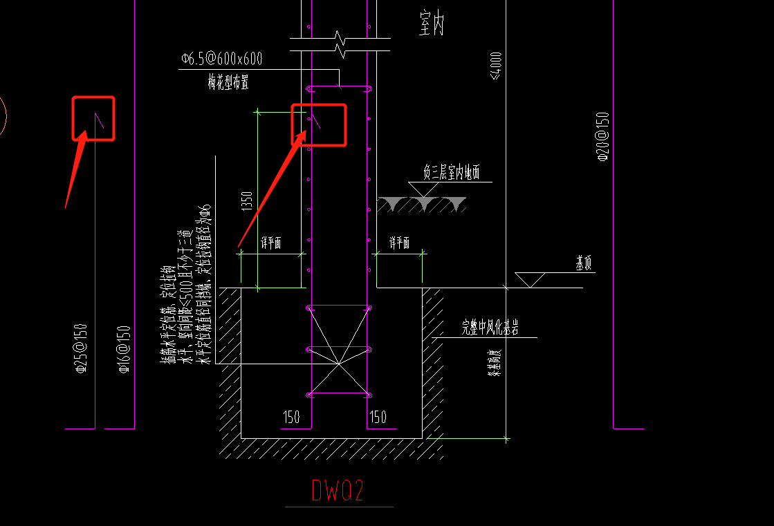 上图的挡墙垂直加强筋就是典型的长短钢筋重叠,挡墙是双排的垂直钢筋,在其中一排又附加了垂直加强筋,两者重叠形成隔一步一的方式,而我标注红框的位置上,就是垂直加强筋的端部,短钢筋在此处中止。