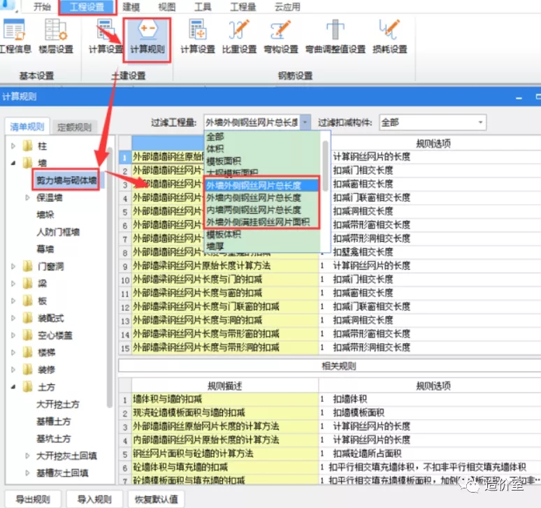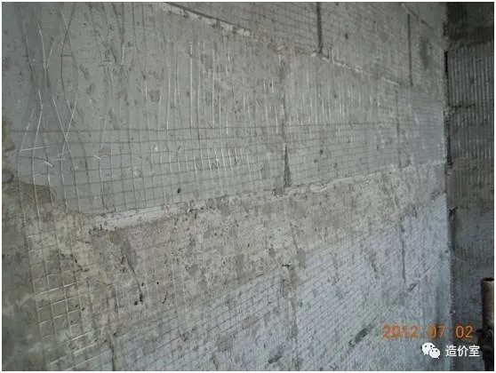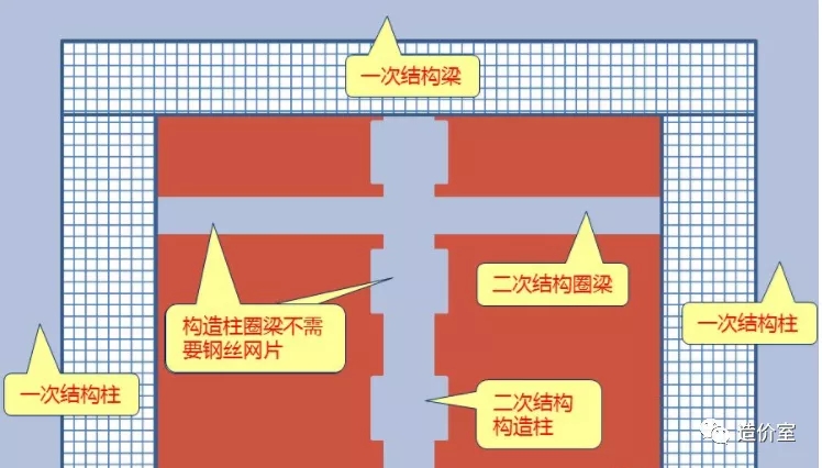 理由竟然是二次结构与砌块墙是同一时间施工的,它们本来就是一体。 各位,这句话你们如何评价,当时我看到这句话还觉得有点道理,然后仔细一想不对啊,不是不同交接处都要吗?管他什么同时不同时呢。 为此我还查了规范,GB50210-2108建筑装饰装修规范,在第4.4.3条明确了 不同材料基体交界处表面的抹灰,应采取防止开裂的加强措施,这句加强措施,就是加强网,钢丝网也算是一种加强网。 所以得出结论,构造柱、圈梁与砌体墙位置也是需要加强网的,原因就是因为不同材料,不管他是不是同时施工,只要是不同材料。 规范也没具体到什么构件,只要是不同材料都要加强网。 当然,在广联达软件中,是可以设置不计算钢丝网片的,具体位置(如图)