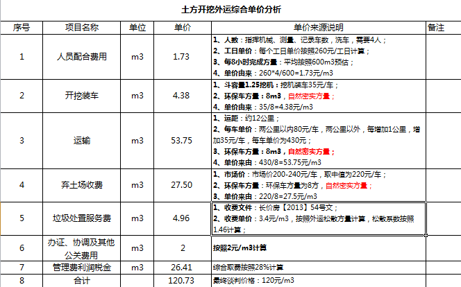 以上所有价格因素的调研,应达到在没有招标的情况下,可以直接进行组价,组出土方主要项目的综合单价,示例如下: