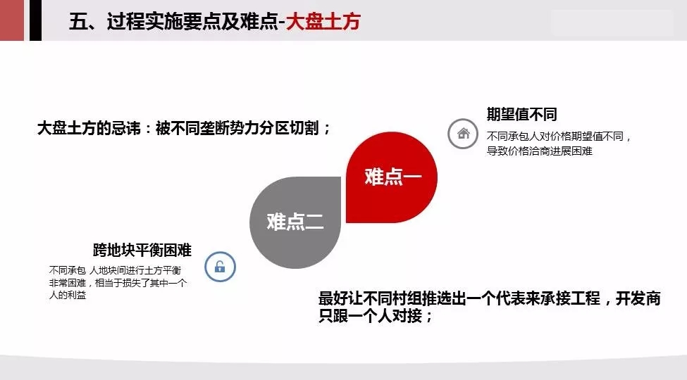 解决方案:在项目开发之初,必须意识到这样隐患的存在,在前期,想尽一切办法协调背后的村组,一个大盘只跟一个土方承包人进行谈判。