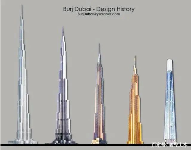 哈利法塔的建筑设计历经多次修改完善(如图1)。最初的设计方案是在2003年初由澳大利亚的一家设计公司提出的高560m的墨尔本葛洛罗塔的复制品。之后SOM重新设计了哈利法塔,其高度变为650m,经多次修改设计方案后最终确定了828m的设计高度。哈利法塔的建筑和结构设计是由艾德里安史密斯和他的90名设计师在斯基德莫尔、Owings和美林(SOM)的芝加哥工作室完成的。SOM还设计了位于伊利诺伊州芝加哥市的威利斯大厦(原名西尔斯大厦)和纽约市的世贸中心一号大楼。哈利法塔类似于威利斯大厦的束筒结构,但它不是一个管状结构,而是由连为一体的管状多塔组成,设计借鉴了韩国首尔的一个名为TowerPalaceThree的73层高的全住宅建筑。
