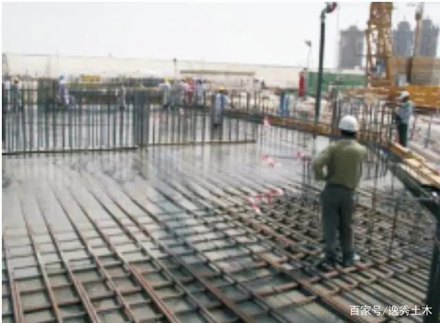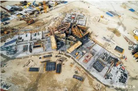 哈利法塔的建筑结构设计哈利法塔采用了创新性的多种结构复合构建的全新结构体系,其下部为混凝土结构,上部采用钢结构。从-30~601m为钢筋混凝土结构,从601~768m为钢结构,768~828m为钢桅杆。哈利法塔地基的表层,全由细小石块经过长时间的自然作用黏合而成,地基相对较为疏松。为了打稳地基,工程师采用194根直径为1.5m深入地下43m的混凝土桩柱,来支撑由12500m3C50自密实混凝土制作的厚3.7m、大小足以容纳建筑整个8000m2基座的混凝土筏板(如图3)。