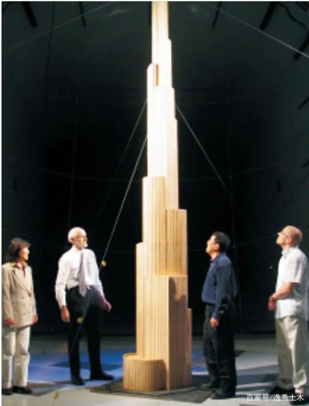 哈利法塔的风洞试验对于作为超高建筑的哈利法塔来说,研究风荷载对其结构稳定性的影响是十分重要的。因此在加拿大安大略的2.4m1.9m和4.9m2.4m的边界层风洞进行了40多次风洞试验和其他实验研究(如图4)。