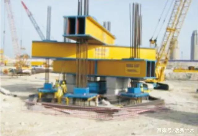为确保194根灌注桩承载力足以达到设计要求的3000t,工作人员在现场进行了压桩试验,测得最大承载力为6000t(如图9)。由于迪拜环境温度较高,混凝土一般在晚上浇筑。为了控制混凝土正常的浇注温度(35℃),首先进行骨料的冷却,其次一部分拌和水被换成碎片冰(如图10)。