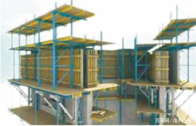 上部结构的墙体采用Doka的SKE100自升式模板系统(如图14);端柱采用钢模板;无梁楼板采用压型钢板作为混凝土模板。混凝土浇筑首先浇筑中心筒和周边的楼板,然后再浇筑墙体和相关楼板,最后进行浇筑的是端柱和附近的楼板(如图15、16)。由于哈利法塔的施工高度高达828m,因此在施工过程中采用了全球卫星定位系统(GPS)来控制施工过程中的精度,以确保施工质量。