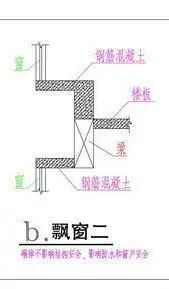 第二种:飘窗的台面是从飘窗起始部位上翻混凝土墩,然后挑板形成的,这种飘窗称之为外飘窗(真飘窗),根据立面的造型,有可能你砸掉这个飘窗后,飘窗下就直接漏了,直接通向通户外,有可能也是一个密闭的空间,砸掉这种飘窗,对结构有影响,也会影响建筑外立面、防水,另外还有窗户掉落的危险。