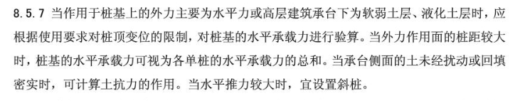 大部分的建筑的水平承载力无须桩来承担。《地基规范》8.5.7规定: