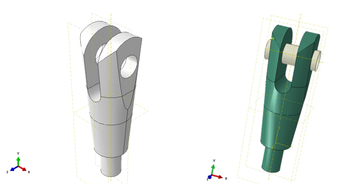 对于模拟中不关心的部分如本例的销钉,可将其定义为刚体,定义刚体的方法有很多:解析刚体、离散刚体、显示体约束、弹性模量设为无限大等等,当几何形状比较简单时优先使用解析刚体,其计算效率最高。