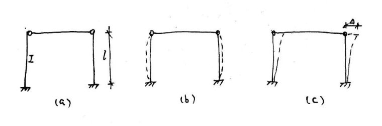 为说明两种失稳的差别,以一个最简单的单层排架为例,见图2。无侧移(图2b)时,柱子计算长度,临界力为