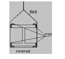 (1)、在构件四角做包角(用半圆钢管内夹角钢)以防止钢丝绳刻断。