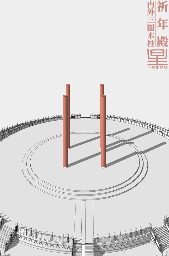 木柱由内而外分三圈排列最内圈的4根钻金柱高度近20m,象征一年四季春、夏、秋、冬;内圈之外的12根柱子被称为金柱, 象征一年十二个月;最外圈较小的12根木柱则被称为檐柱象征一天十二个时辰。金柱和檐柱相加的二十四根,象征一年二十四个节气。