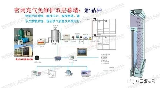 双层幕墙采用多层结构,维护和清理构件及腔体成本较高,特别是对人工成本很高的欧洲市场来说更是如此。针对这种情况,研发免维护双层幕墙,能适应市场需要。以下为该免维护双层幕墙系统原理和试验数据。密闭充气免维护双层幕墙系统特点: