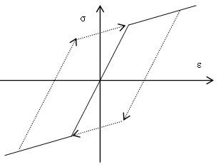 SAUSAGE软件中的一维单元采用纤维单元,该单元基于 Timoshenko 梁理论, 可以考虑剪切变形刚度;连接体构件材料为钢材,对于一维的梁、柱和支撑构件,软件采用双线性随动强化模型(如图2所示),考虑包辛格效应,在循环过程中无刚度退化。分析中,钢材硬化段弹性模量折减系数取0.0175。