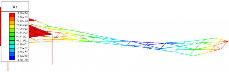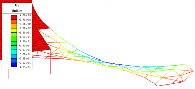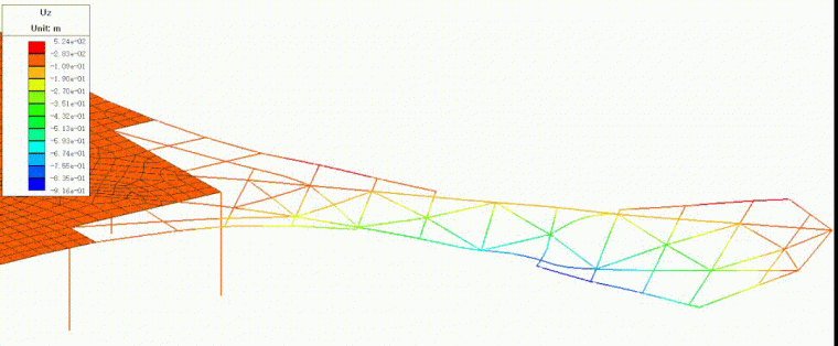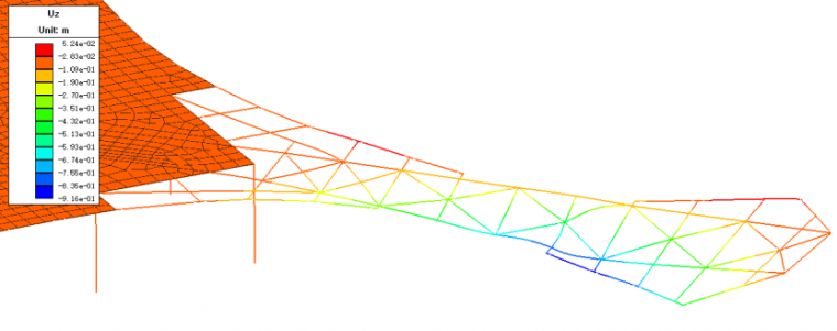 图13 轴向水平加载极限荷载时刻结构竖向位移云图