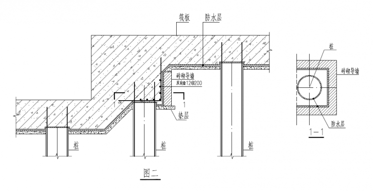 (3)桩头斜面与底板混凝土被防水层隔断,影响桩的受力状态;