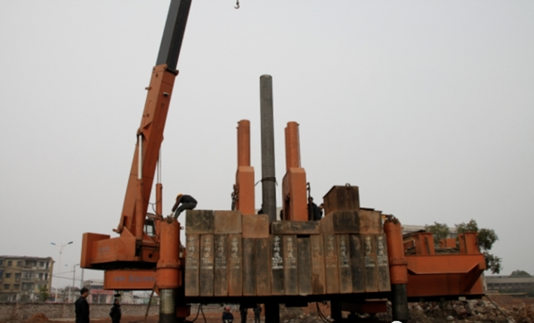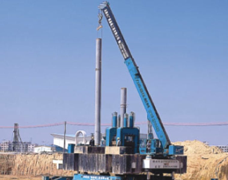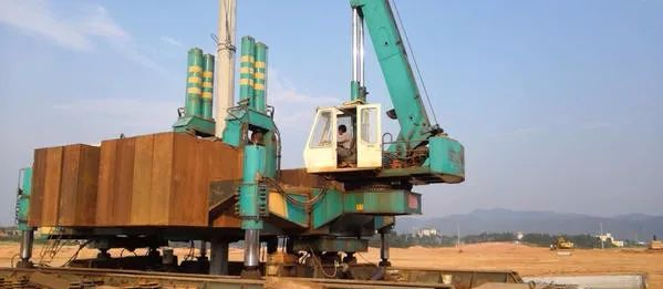 桩机进场后将机架调整垂直,夹持钳口中心(可挂中心线锤)与桩位对准,调平桩机。