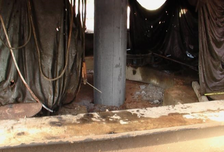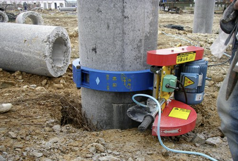 打完一根桩后,若有露出地面的桩段,应使用截桩机先截桩后移机,严禁用桩机将桩强行扳断或使用大锤进行破桩。