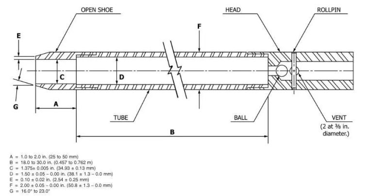 1、钻孔至预定深度后,用一个重63.5kg (140磅)的落锤,从76cm (30英寸)的高度自由落下,锤击一根标准的探杆。