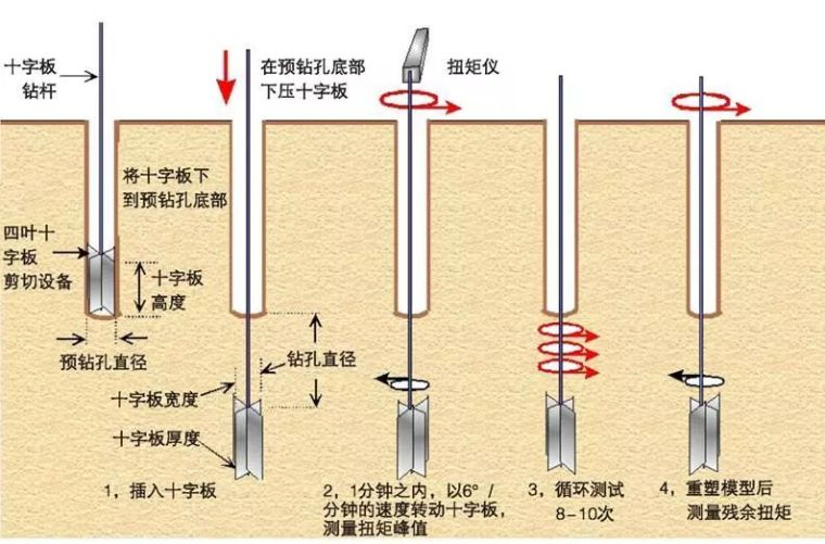 将一个装有4个叶片的探头压入到未扰动的土层,然后转动探头,直至土壤剪切破坏。