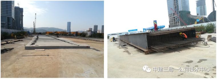 施工注意事项:①钢筋笼台座需用水准仪精确控制,统一标高。②对于两侧都有工字钢的钢筋笼,竖向桁架筋需要截断方便上层钢筋横穿施工。③预埋件套筒可涂抹黄油并加盖或设置可打开的密闭盒子保护,后者效果优于前者。④钢筋笼可分节段吊装,分段处主筋接头应交错布置,错开长度不小于35d,在长35d区范围内,纵向受力钢筋接头面积百分率不应大于50%,并严格按通规止规对接头部位检测,确保对接顺利。⑤钢板浇筑混凝土侧按设计要求设置防绕流铁皮。⑥台座最好采用混凝土浇筑,焊接工字钢台座易变形,且对焊工操作不利。