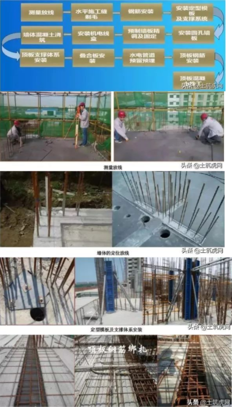 施工难点:该工程为预制板剪力装配式结构,质量要求高,为确保工程质量和保证工期,采取夜间赶工、工序交叉、平面流水等多种施工组织形式进行作业,做到多工作面施工。