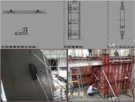 定型墙模板顺序:模板固定底盘安装定型墙模板斜支撑拉接横梁检查验收。