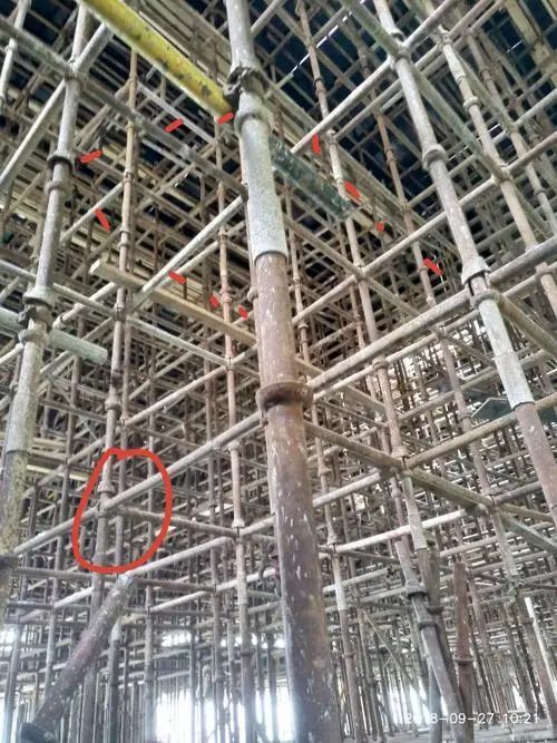 5)施工安全保证措施:模板支撑体系搭设及混凝土浇筑区域管理人员组织机构、施工技术措施、模板安装和拆除的安全技术措施、施工应急救援预案,模板支撑系统在搭设、钢筋安装、混凝土浇捣过程中及混凝土终凝前后模板支撑体系位移的监测监控措施等。
