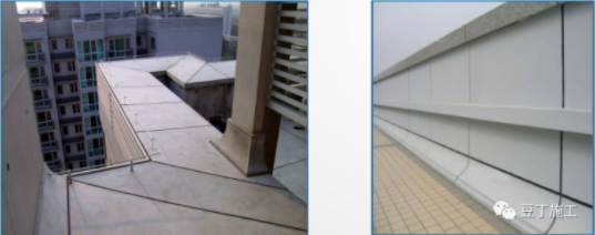 (2)女儿墙、露台栏板等外墙EPS线条要设置混凝土压顶,避免线条与结构交界处脱胶开裂渗水。