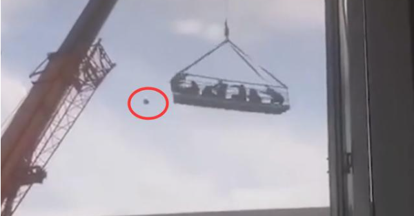 近日,河北唐山某建筑工地,吊车赶上大风天气作业送7名工人往高空施工,突然大风吹来吊篮在空中旋转如陀螺。