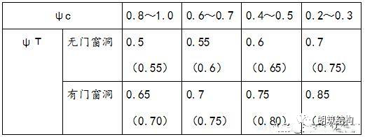 7、周期折减系数考虑填充墙的影响。《高规》第3.3.17条给出的数值是当非承重的填充墙主要是砖或空心砖砌体填充墙的经验总结;对于砖或小型砌块填充墙其取值可按下表采用。当填充墙为轻质材料或外挂墙板时取Т=0.8~0.9。