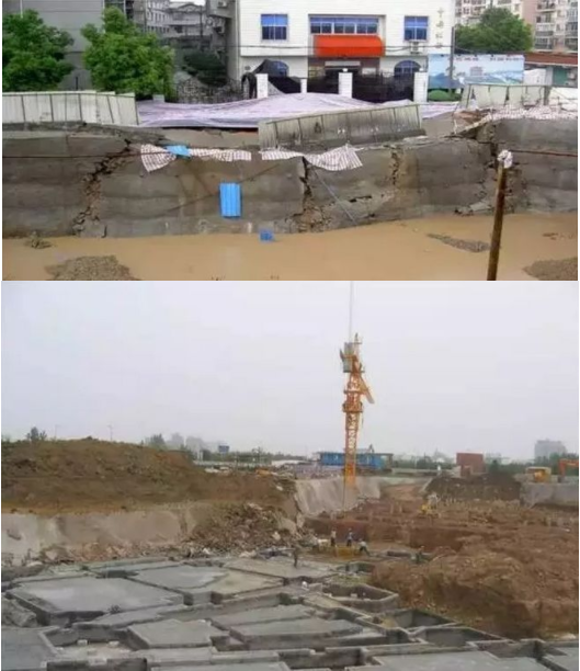 止水帷幕功能失效和坑底渗透变形破坏是指止水帷幕丧失挡水功能,产生渗漏、涌水、流土或流砂。由于水土流失使基坑外地面下沉、塌陷,导致邻近建筑物的开裂和损坏。