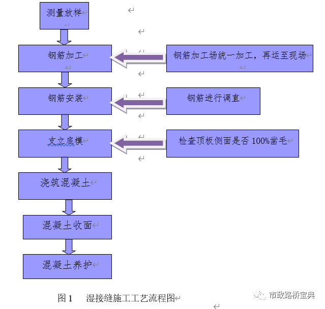 1.3在浇筑湿接缝混凝土前,提前30分钟将施工缝冲洗干净并充分湿润,以保证新旧混凝土接触良好。