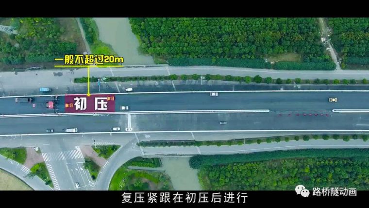 初压:初压应在紧跟摊铺机后碾压,并保持较短的初压区长度,以尽快使表面压实,减少热量损失。碾压由路边向向中心,相邻碾压带应重叠1/2-1/3轮宽,每处碾压1~2遍即可。压路机的速度宜为2~3km/h。